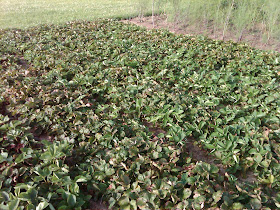 In my previous post "Strawberries and Leaf Spot", dated April 14, 2012 I talked about how the disease Leaf Spot was over running my strawberry patch. I talked about how when I first uncovered the strawberries early in spring from their winter protection, they looked wonderful. Then a month later it was obvious that they had some sort of disease, and how through research on the Internet, I identified that disease as Leaf Spot. It started at one end of my patch, and worked it's way across my patch until the entire patch was showing severe infection. Below is what it looks like.