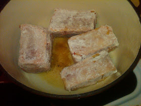 Brown the meat on all sides on as I said medium high heat. Don't rush it, you want the meat brown on all sides without burning it or the oil.