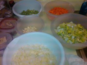 Add HALF OF THE - Carrots, Celery and Onions, saute until Onions are translucent