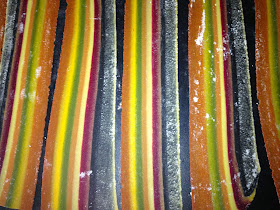 | Striped Pasta Strips ready to roll out into sheets for Ravioli |